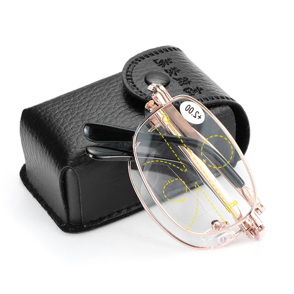 Серебристого металла оснастки складные очки для чтения с Чехол + 1,5 + 2,0 + 2,5 + 3 + 3,5 + 4,0