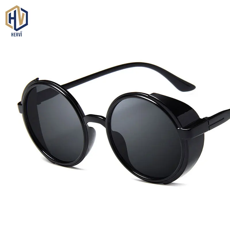 Стимпанк круглые солнцезащитные очки ретро очки в черной оправе красочные ртутные линзы для мужчин и женщин высокое качество солнцезащитн...