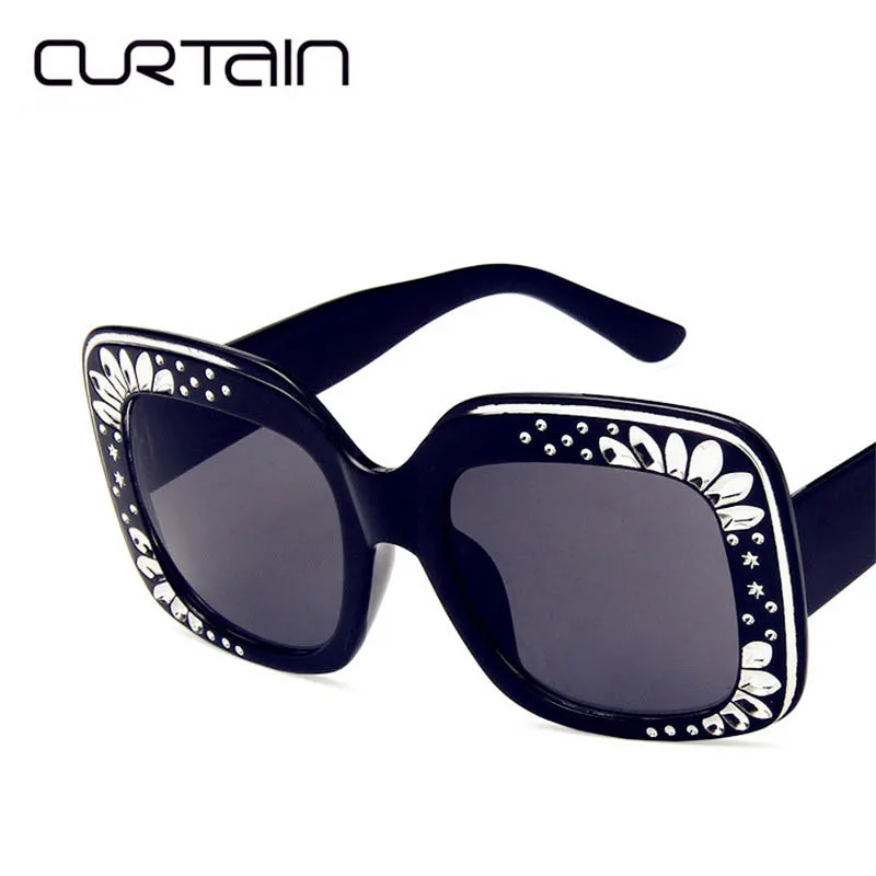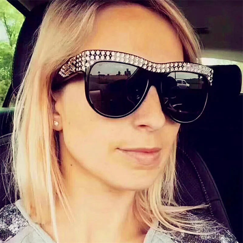 Шторы 2019 очки оверсайз со стразами Большие размеры оправа квадратные очки Для женщин дизайнерские темные очки солнцезащитные очки без опра...