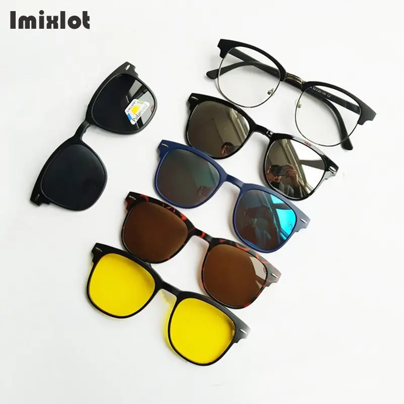 Модные очки в оправе для мужчин и женщин с 5 солнцезащитных очков, магнитные поляризованные очки с клипсой для мужчин, универсальные очки YQ174