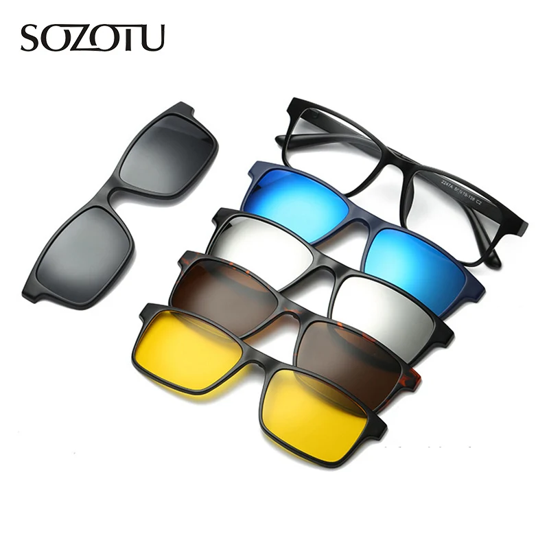 Солнцезащитные очки с 5 линзами на клипсах для мужчин и женщин, поляризованные очки на клипсах, магнитные солнцезащитные очки, оптические оп...