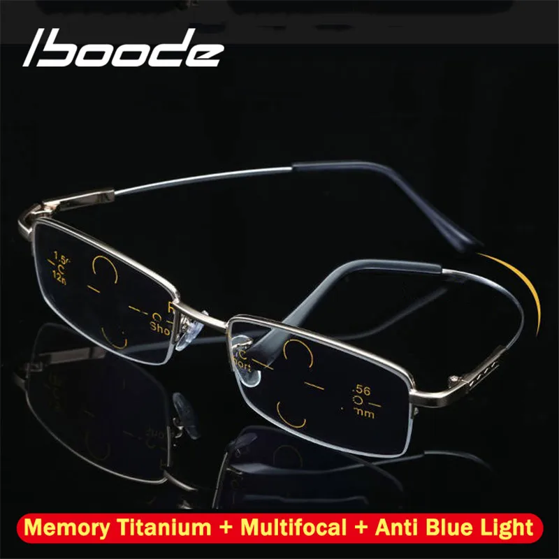 Iboode titanium Мультифокальные Прогрессивные очки для чтения для мужчин и женщин анти синий свет близкого дальнего зрения сплав пресбиопические ...
