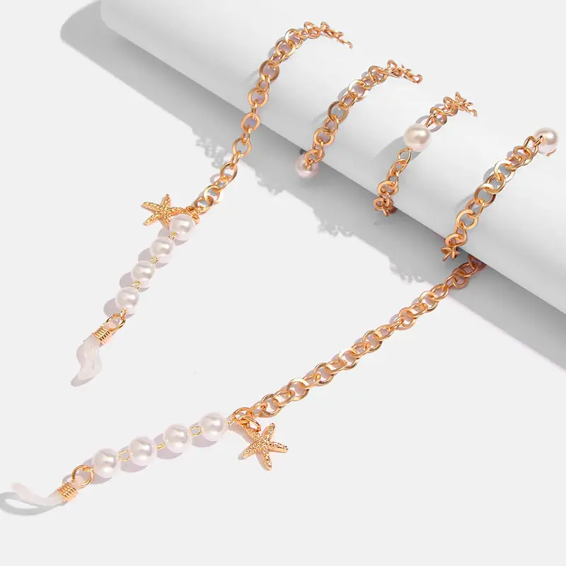 JUST FEEL, новая мода, имитация жемчуга, морская звезда, очки, цепочка, шарм, для женщин, для чтения, противоскользящий шнур для очков, держатель, шейный канат, подарки