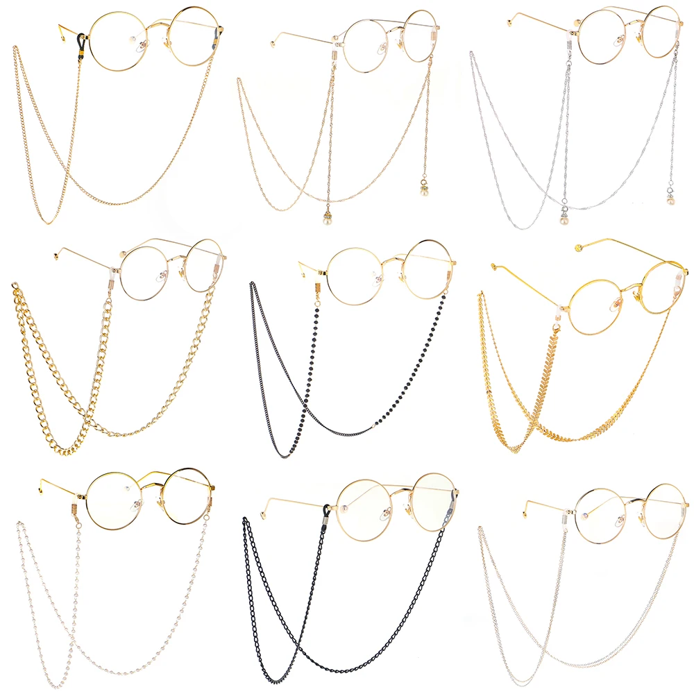 Новинка 2020, золотая металлическая цепочка для очков для чтения, для женщин и мужчин, плоская цепочка для очков, противоскользящая цепочка дл...