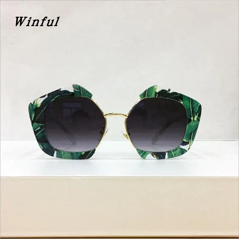 2019 Винтаж солнцезащитные очки с многоугольной оправой Для женщин зеленый лист банана солнцезащитные очки модные квадратные очки UV400 женски...
