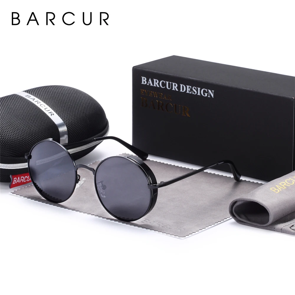 Оригинальные круглые солнцезащитные очки BARCUR, мужские винтажные очки в стиле стимпанк, поляризационные очки