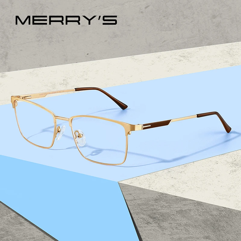 MERRYS Дизайнерские мужские роскошные очки из сплава, Мужские квадратные ультралегкие корректирующие очки при близорукости в деловом стиле S2119