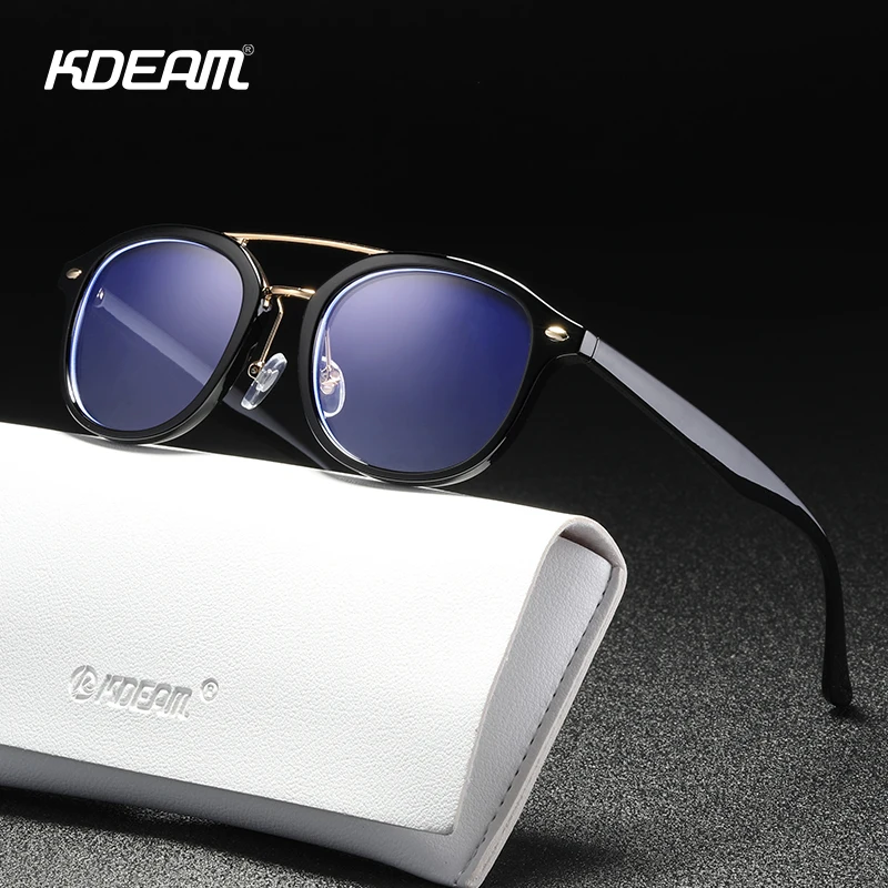 KDEAM, синий светильник, блокирующие очки для женщин, Круглый двойной мост TR90, высококачественные пластиковые титановые очки, мужские очки для близорукости