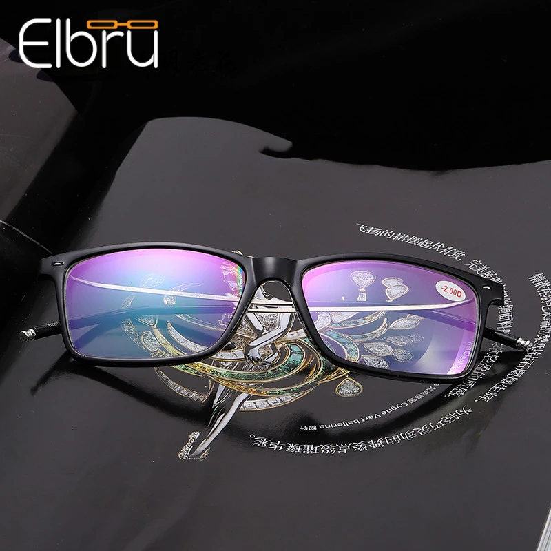 Elbru классическая черная оправа Очки для близорукости эластичные очки для ног мужские бизнес короткие близорукие очки унисекс