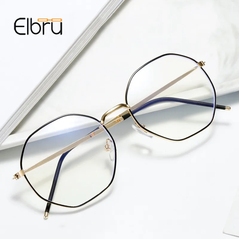 Elbru Фирменная оправа для очков, прозрачные линзы, очки, Ретро стиль, полигон, поддельные очки, анти-синий светильник, очки, оптическая оправа ...