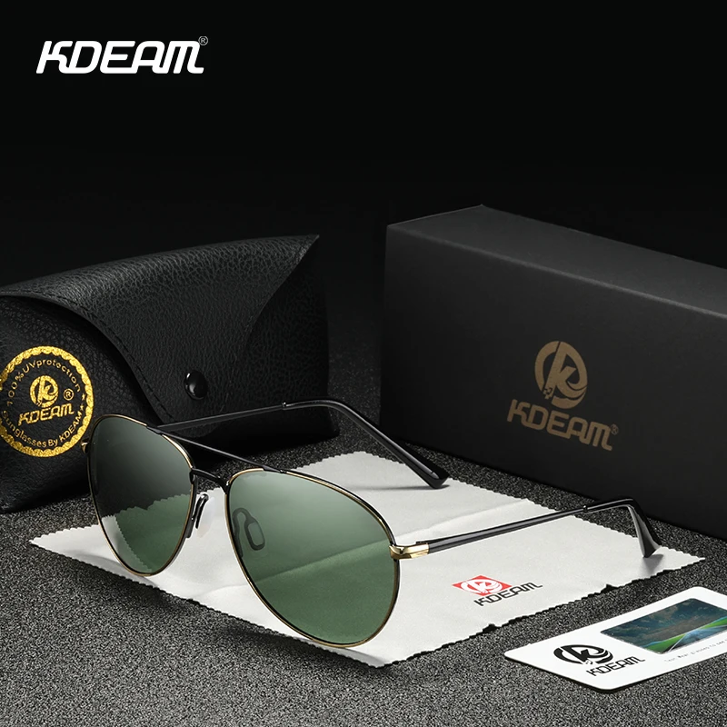 KDEAM парные пилотные солнцезащитные очки, поляризационные мужские солнцезащитные очки с двойным мостом для вождения, мужские солнцезащитные очки с противоскользящей силиконовая носовая фиксирующая накладка