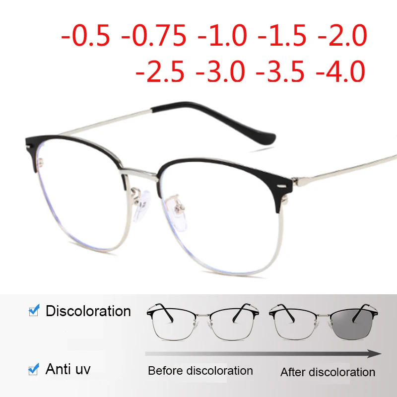 Блокировка голубой светильник квадратный сплава очки Анти Blue Ray компьютер фотохромные очки по рецепту, 0-0,5-1,0-4,0