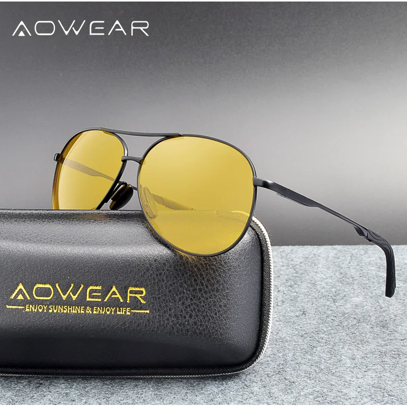 AOWEAR брендовые дизайнерские очки ночного видения мужские желтый HD ночного вождения День Ночь Polarized Pilot Sunglasses для дождливых туман день