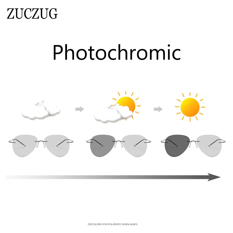 ZUCZUG Титан Rimeless фотохромные солнцезащитные очки мужские поляризованные очки для вождения мужские повседневные и ночные солнцезащитные очк...