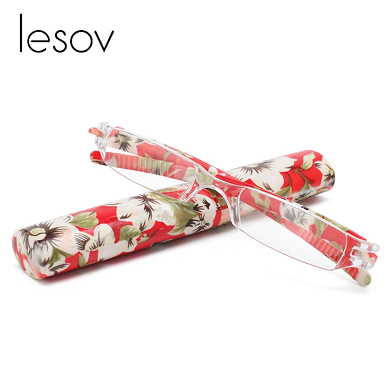 Lesov Печатный Цветок женские очки для чтения с футляры для очков женские прямоугольные линзы из смолы пресбиопические очки женские очки