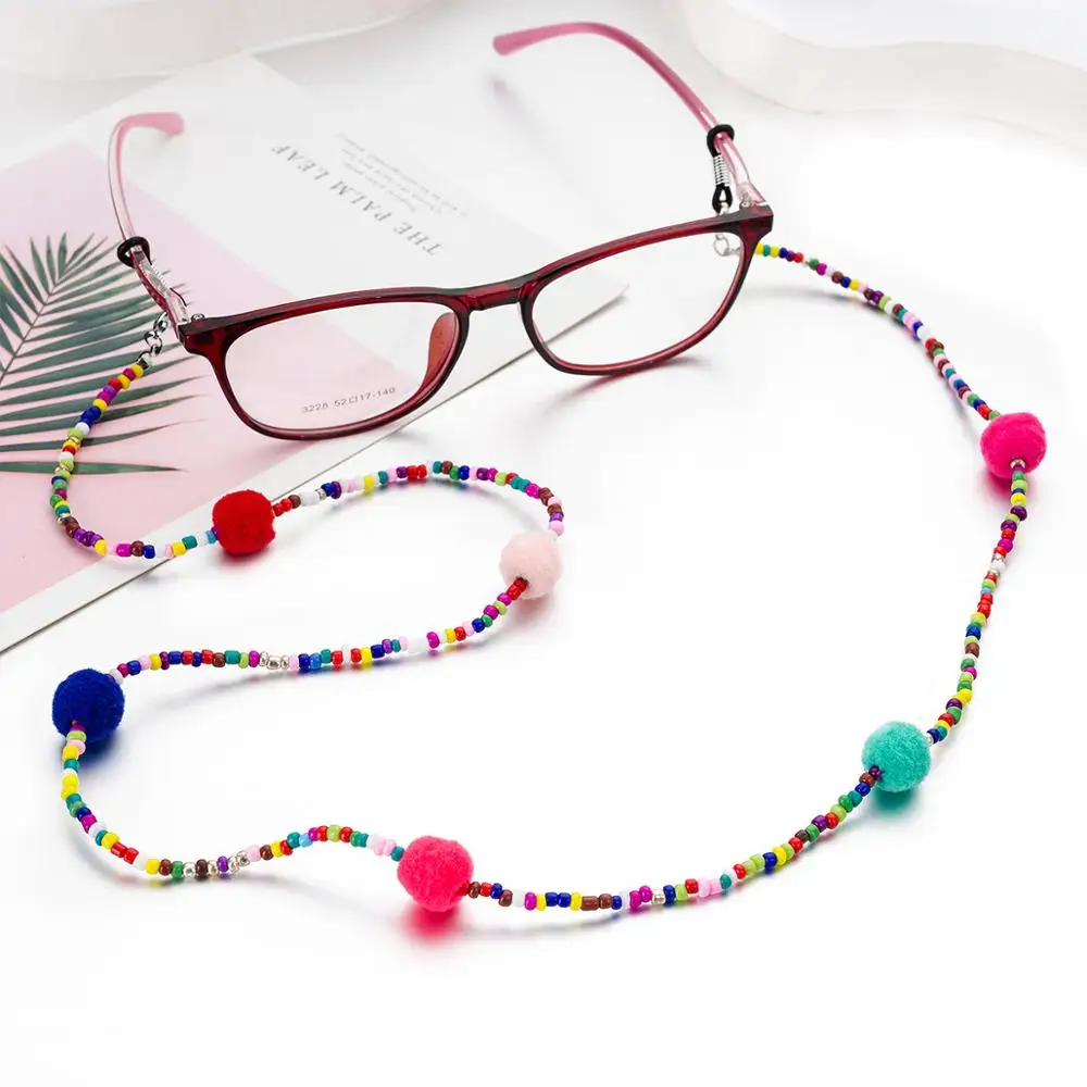 Разноцветные бобы с помпоном из хлопка, цепь для очков с универсальным силиконовым противоскользящим держателем, спортивный шнур для солнцезащитных очков
