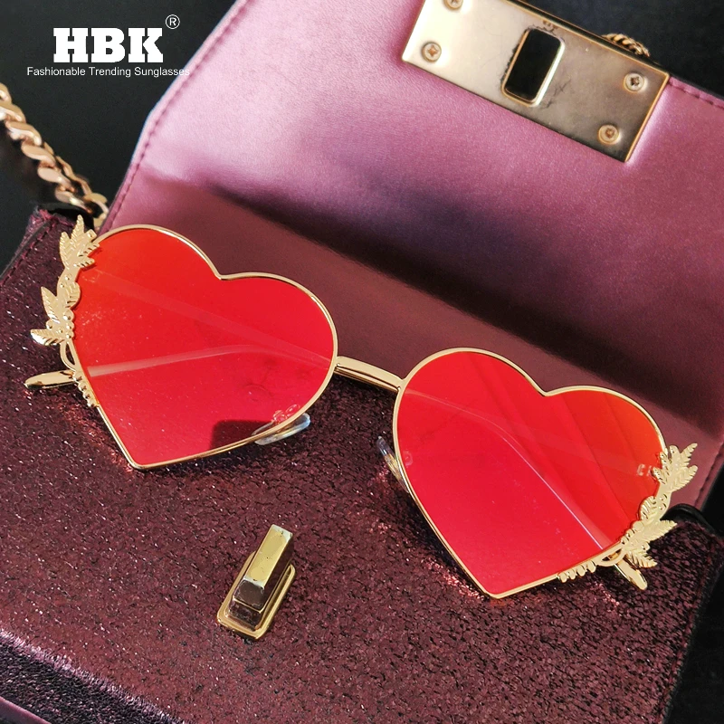 Новые модные солнцезащитные очки в форме сердца, металлические женские роскошные уникальные брендовые дизайнерские красные зеркальные линзы в форме сердца, солнцезащитные очки для мужчин UV400