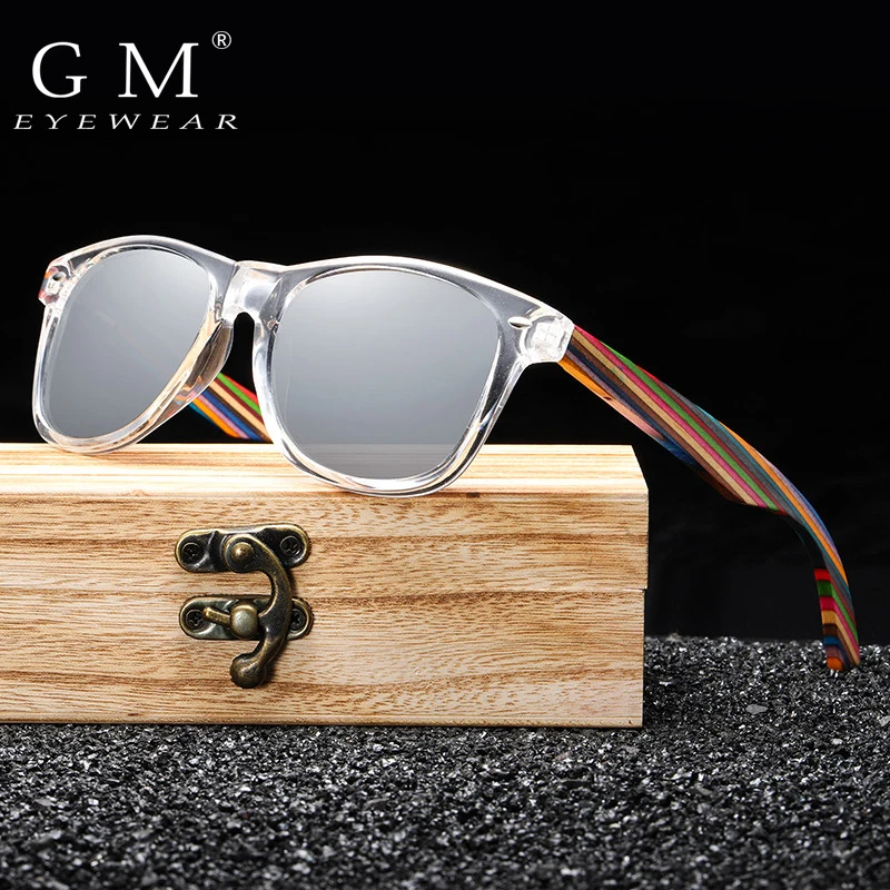 Поляризационные солнцезащитные очки GM для мальчиков и девочек с переработанной оправой и цветными деревянными дужками S5062