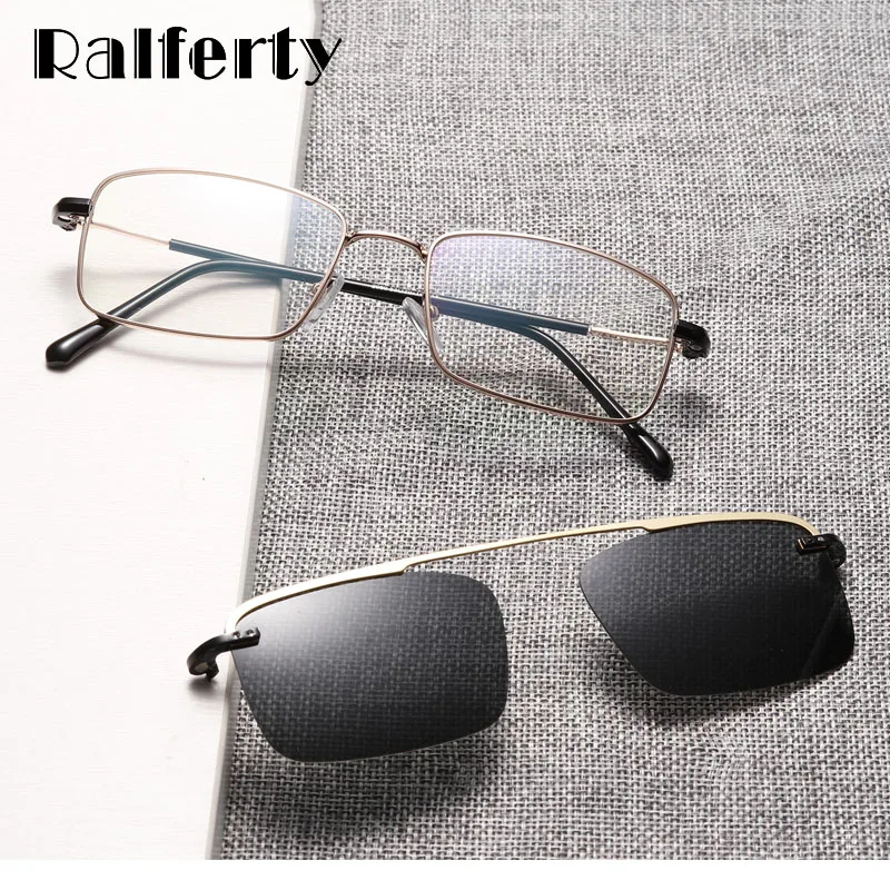 Ralferty 2019 Ретро квадратные поляризованные солнцезащитные очки для женщин и мужчин металлические очки магнитные прикрепляемые очки по рецепт...