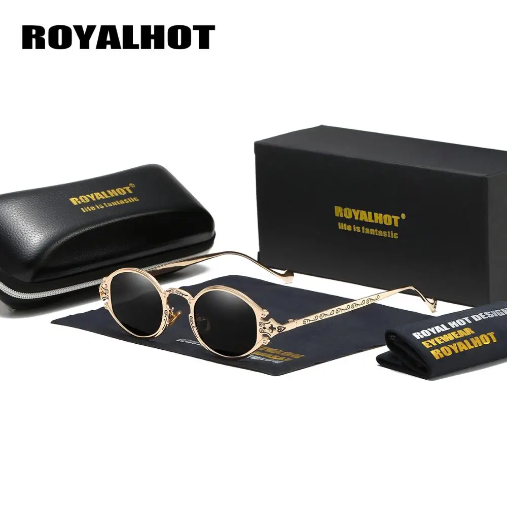 Солнцезащитные очки RoyalHot с металлической круглой оправой, мужские и женские модные очки, брендовые дизайнерские ретро классические Винтажные Солнцезащитные очки высокого качества
