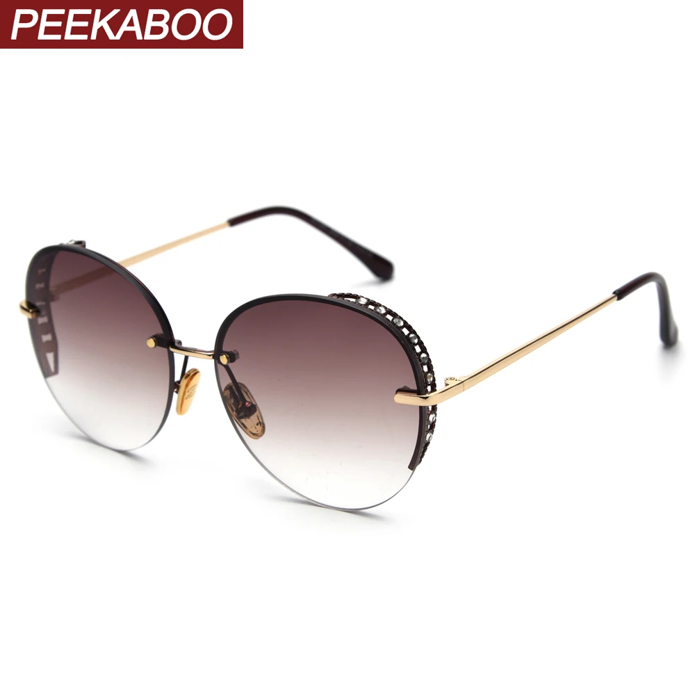 Peekaboo градиент полуоправы солнцезащитные очки для женщин для без оправы горный хрусталь Ретро Круглый Солнцезащитные очки для женщин Лето ...