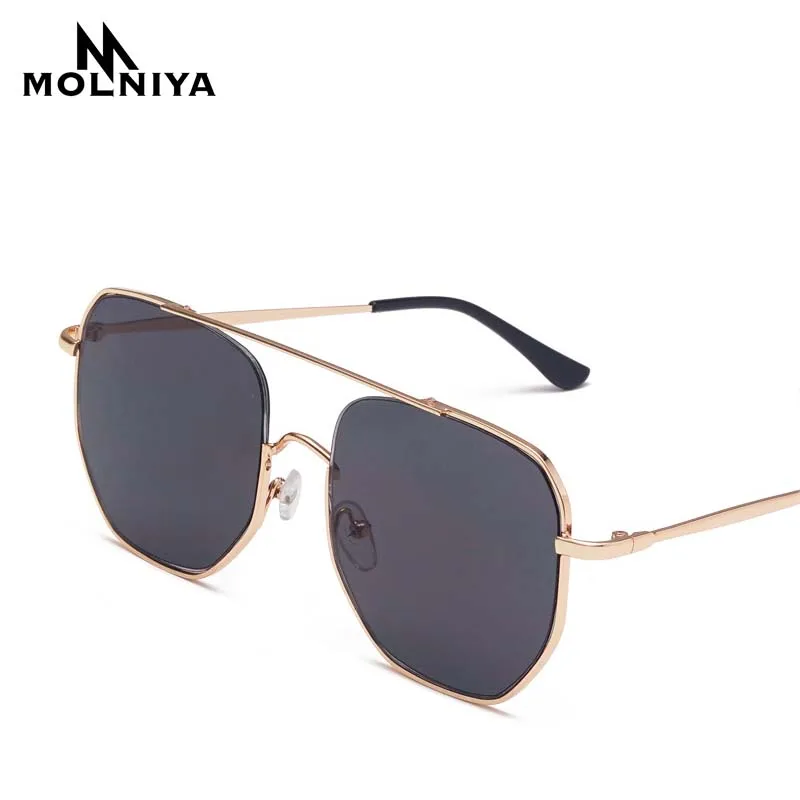 MOLNIYA мужские Квадратные Солнцезащитные очки Ретро металлическая большая оправа солнцезащитные очки женские сиамские прозрачные оправы UV400 Качество Бренд