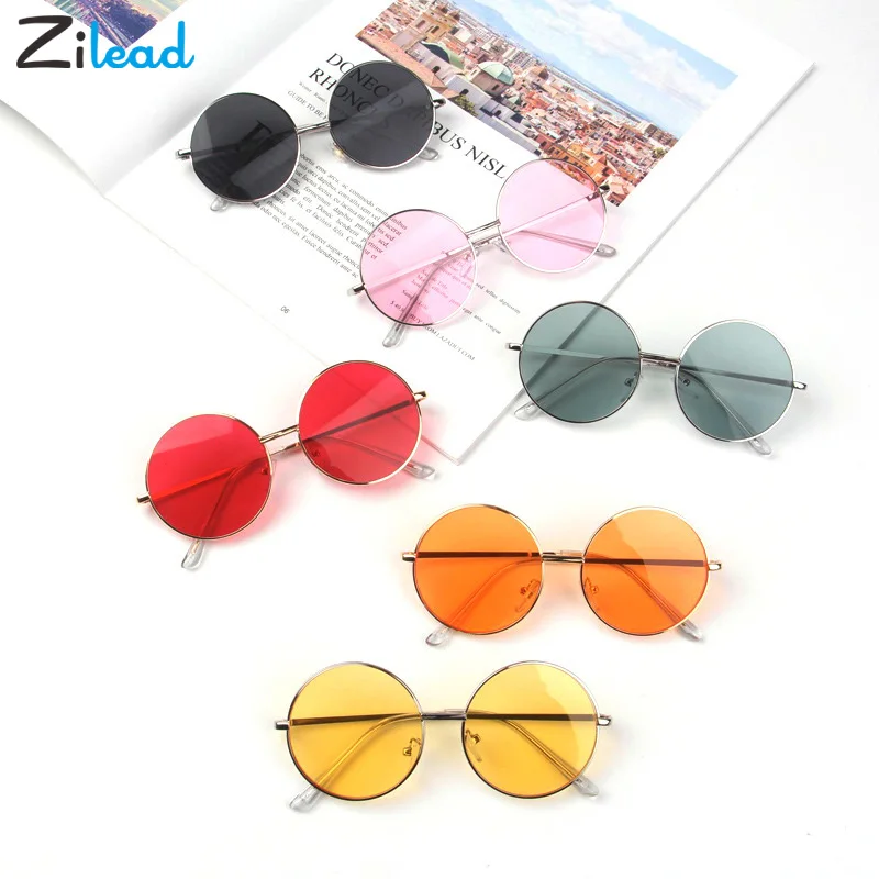 Zilead/корейские простые детские круглые солнцезащитные очки ярких цветов для девочек с защитой от ультрафиолета; Популярные детские солнцезащитные очки в стиле ретро для мальчиков и девочек