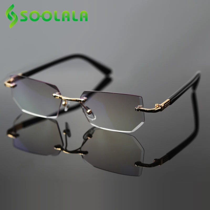 SOOLALA анти-синий светильник с алмазной резкой без оправы очки для чтения мужские с футлярами пресбиопические очки для чтения + 1,0 до 4,0