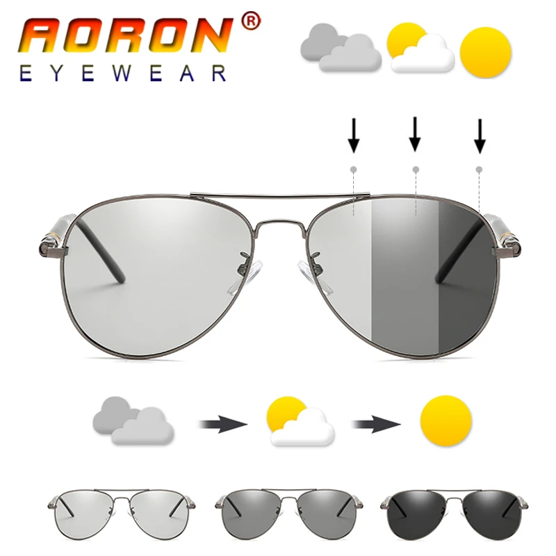 Aoron брендовые Дизайнерские мужские фотохромные пилотные солнцезащитные очки для вождения поляризованные солнцезащитные очки металлическ...