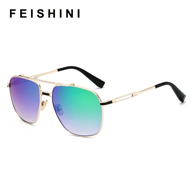 Мужские солнцезащитные очки в стиле знаменитостей FEISHINI, фирменный дизайн, Ретро стиль, металлическая оправа, градиентные цветные линзы, синие мужские солнцезащитные очки, оригинальный щит