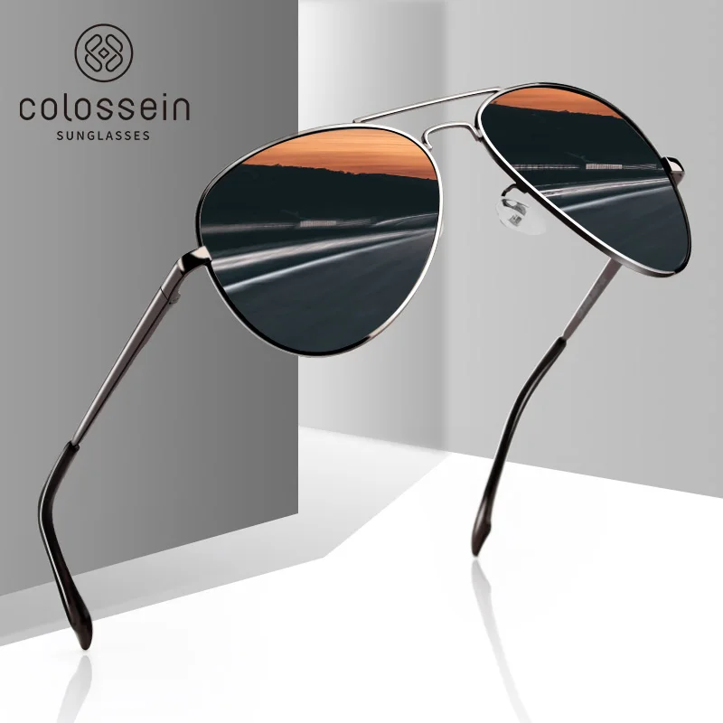 COLOSSEIN солнцезащитные очки Для Мужчин Поляризованные фирменные Классические из металла очки пилота для Для женщин коричневый объектив модн...