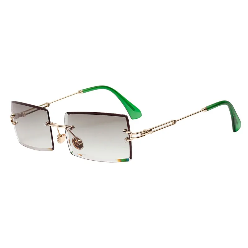 Женские солнцезащитные очки в ретро стиле, маленькие прямоугольные Квадратные Солнцезащитные очки без оправы, Летний стиль, женские зелены...
