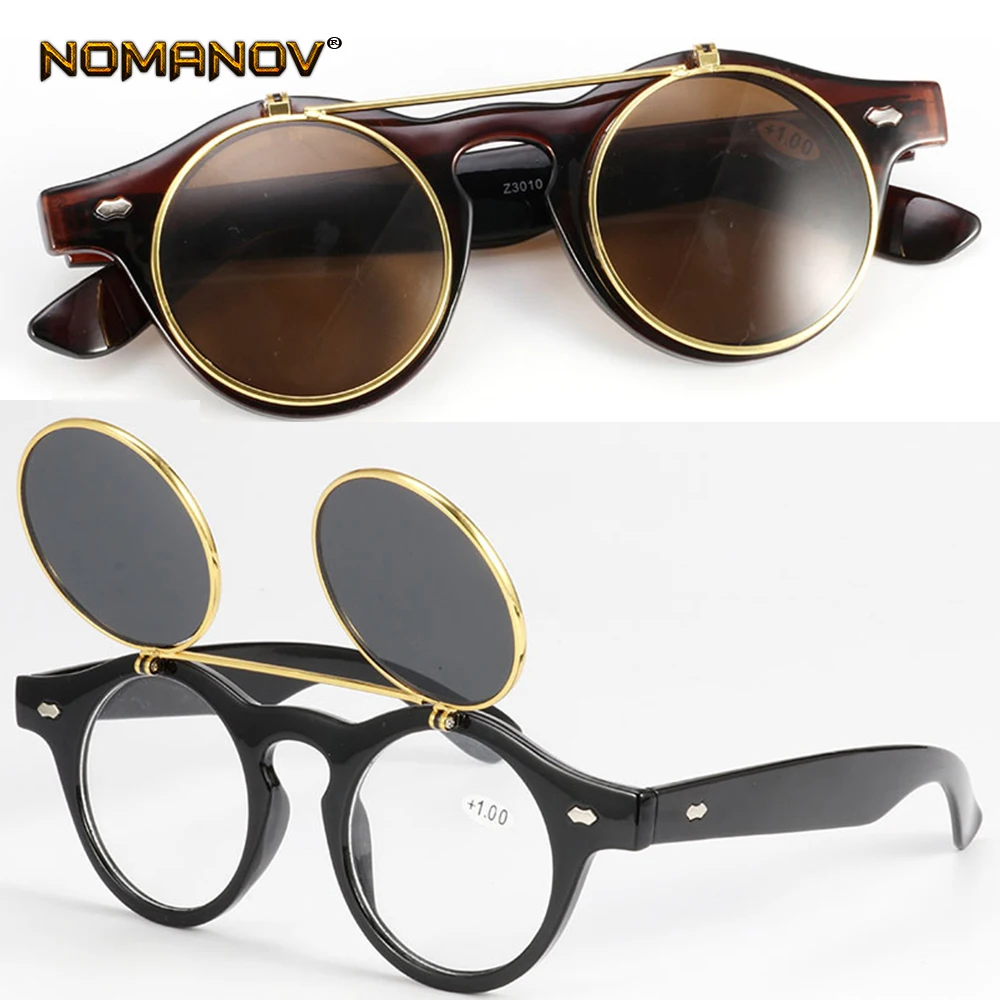 NOMANOV крытый и открытый откидной Чехол солнцезащитные очки круглые очки для чтения, в стиле ретро + 0,75 + 1,5 + 1,75 + 2 + 2,25 + 2,5 + 2,75 до + 3,5