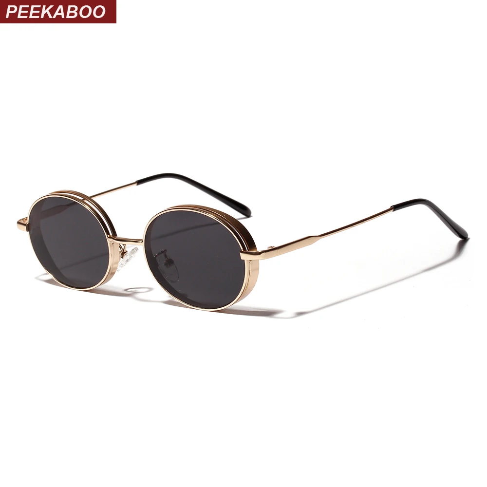 Peekaboo Овальный Винтажные Солнцезащитные очки 2019 женщин Подарок красное золото черный Ретро Круглые Солнцезащитные очки для мужчин из метал...