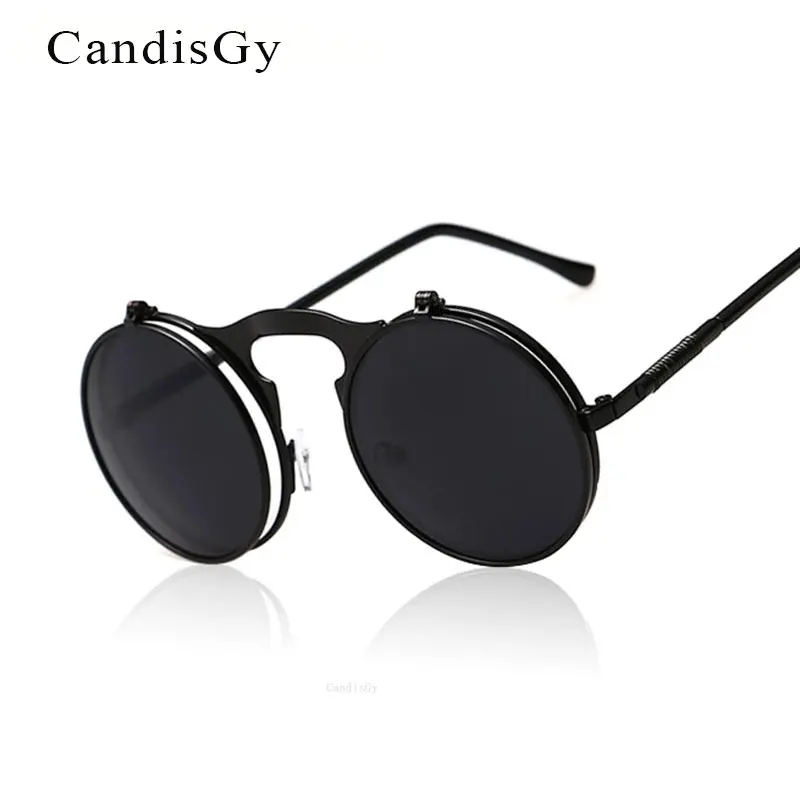 2019 CandisGy классический для мужчин Круглый плоское Покрытие Солнцезащитные очки для женщин модные мужские роскошные золотые рамки с открытым