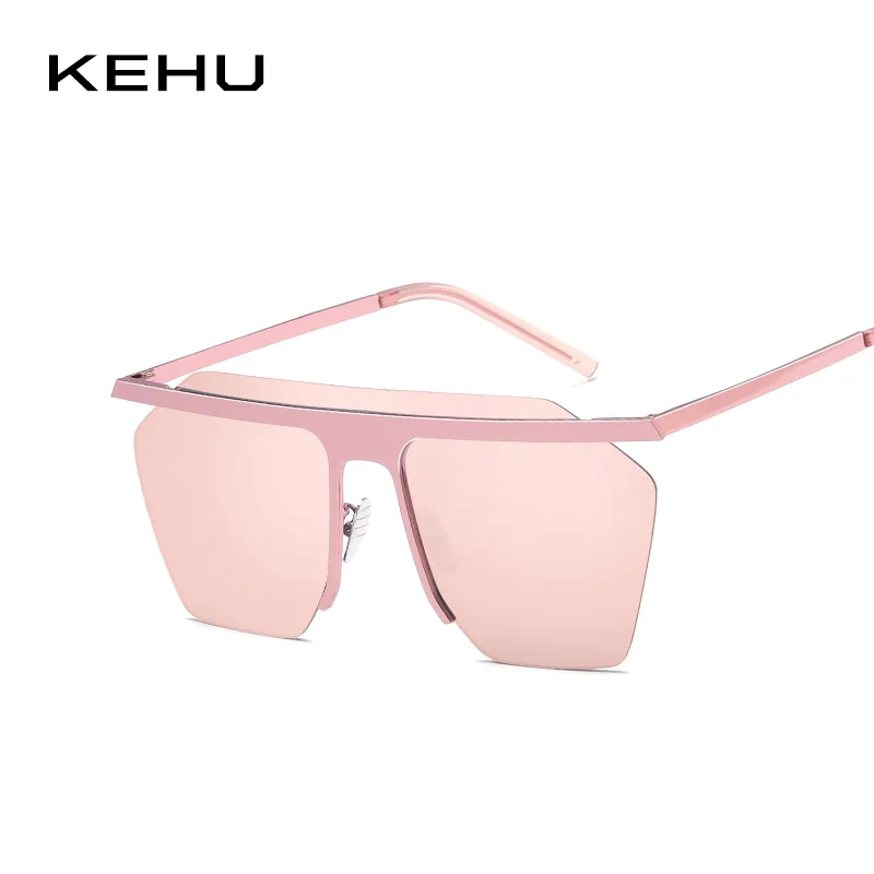 KEHU женские солнцезащитные очки фирменные дизайнерские модные солнцезащитные очки без оправы мужские золотистые розовые синие зеркальные ...