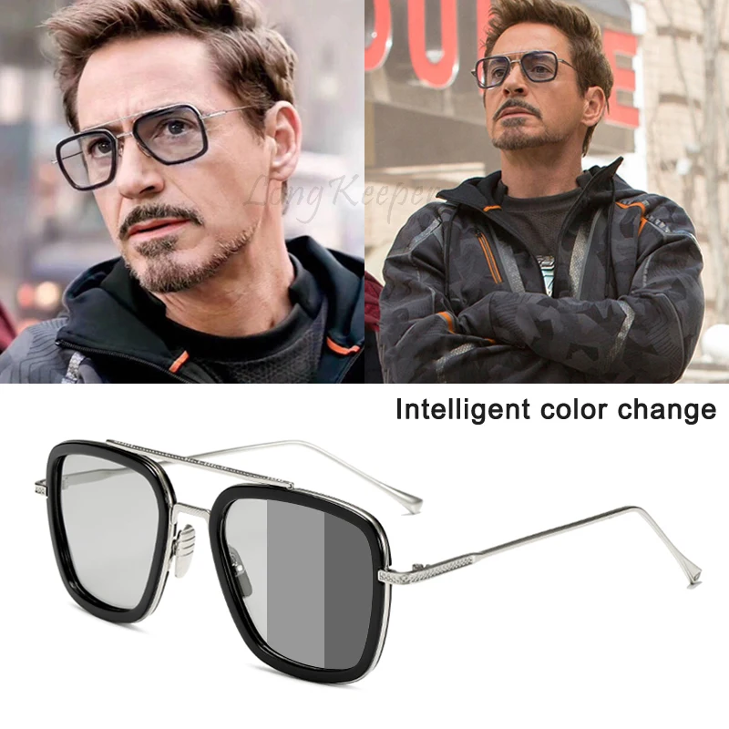Мужские солнцезащитные очки фотохромные поляризационные солнцезащитные очки Тони Старк Железный человек панк очки ретро Пилот очки для вождения очки хамелеон