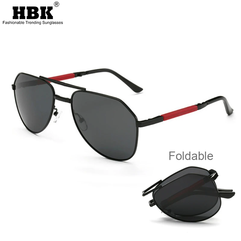 HBK поляризационные складные солнцезащитные очки мужские для вождения авиационные складные двухлучевые шестигранные солнцезащитные очки д...