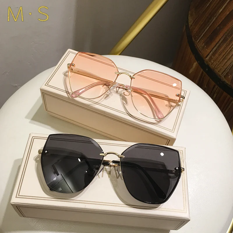 Прямоугольные Большие женские очки 2019 градиентные коричневые розовые солнцезащитные очки без оправы для женщин подарок uv400