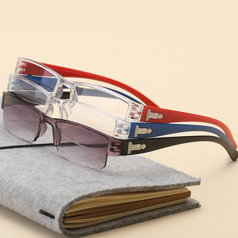 Очки для чтения в полуоправе пресбиопии, мужские и женские модные Универсальные ультралегкие очки без оправы 1,0, 1,5, 2,0, 2,5, 3,0, 3,5, 4