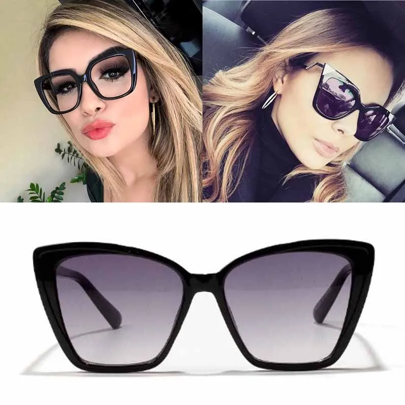 Черные женские крупные Солнцезащитные очки Ретро Винтаж Градиент коричневый большая рамка для женщин бренд кошачий глаз солнцезащитный кр...