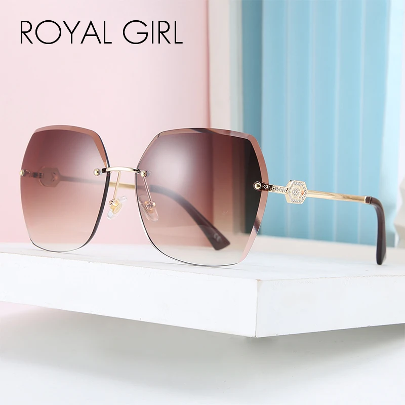 Королевские женские солнцезащитные очки больших размеров без оправы, брендовые дизайнерские Элегантные женские очки с прозрачными линзами, градиентные солнцезащитные очки ss143