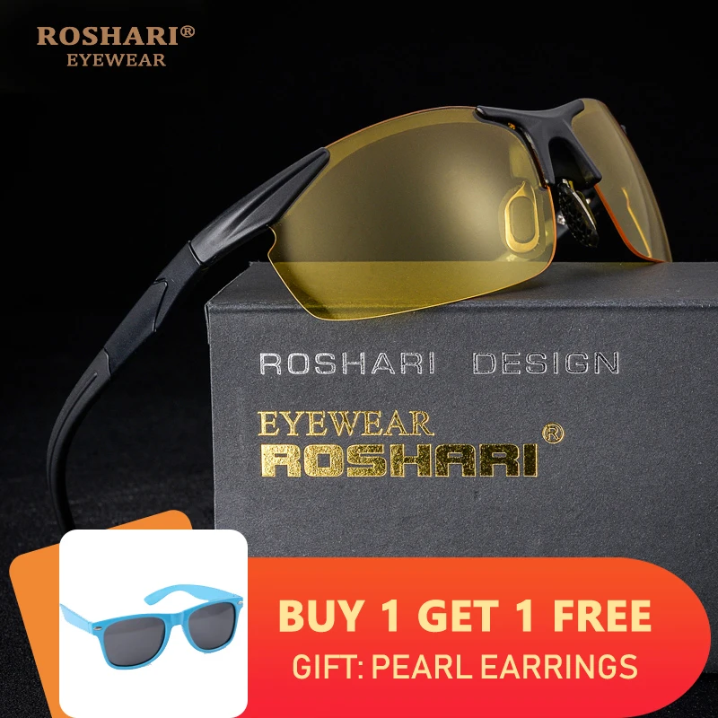 RoShari мужские поляризованные солнцезащитные очки ночного видения брендовые дизайнерские винтажные желтые вождения солнцезащитные очки муж...