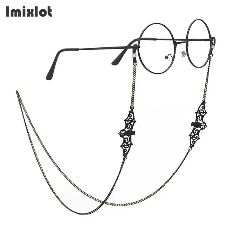 Ретро Черные летучая мышь очки с цепочкой ремешок ожерелье Металлические солнцезащитные очки держатель цепи шнур ремешок для очков для чте...