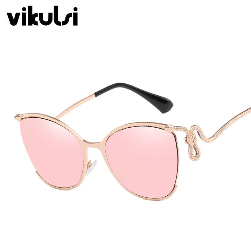 Роскошные итальянские розовые зеркальные солнцезащитные очки для женщин UV400 ретро брендовая Дизайнерская обувь Змеиный Металл рамки защит...