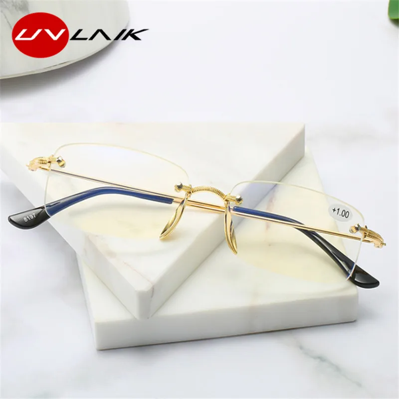 UVLAIK Rimless Reading Glasses Men Women Bifocal Transparent Eyeglasses Double Light Hyperopia Presbyopic Glasses 1.5 2.0 2.5