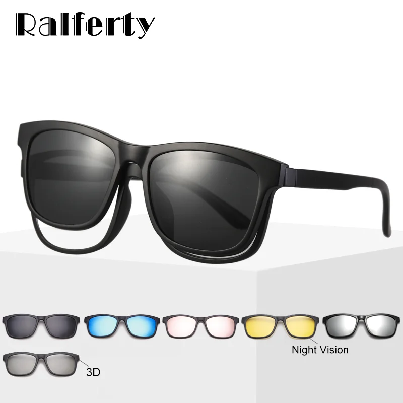 Ralferty магнит солнцезащитные очки Для Мужчин оправы для очков с зажимом на солнцезащитные очки для женщин поляризационные UV400 TR90 3D очки ночно...