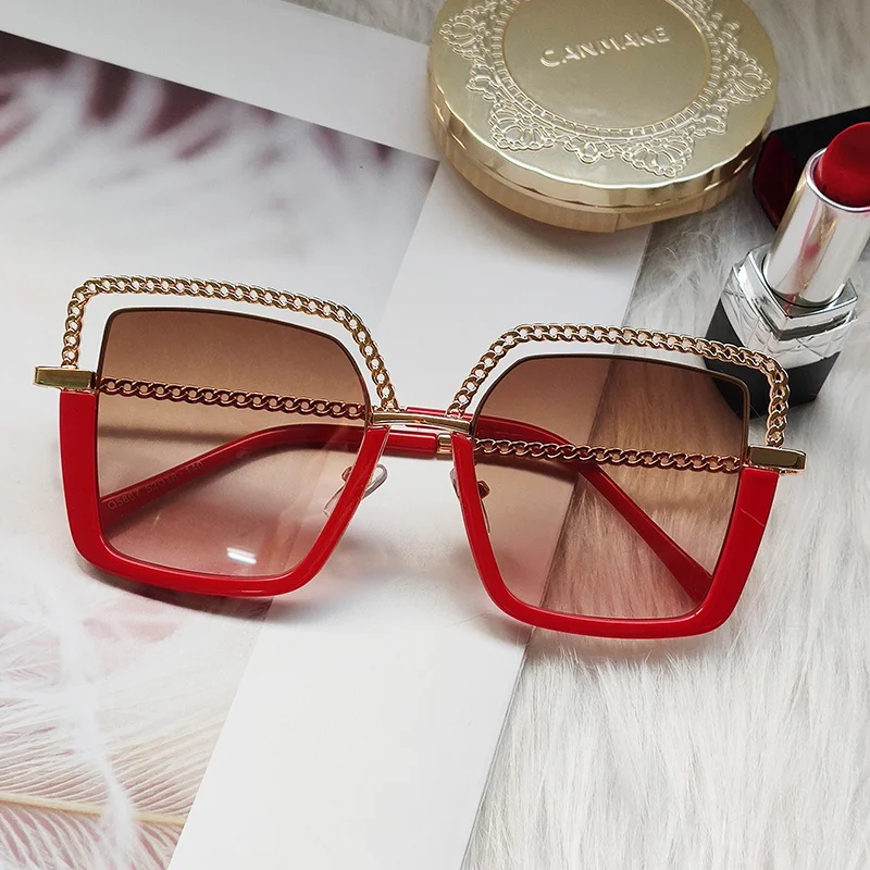 Ralferty 2018 женские крупные солнцезащитные очки цепи украшены солнцезащитные очки для женщин Для мужчин прохладный очки панка UV400 черные тёмны...