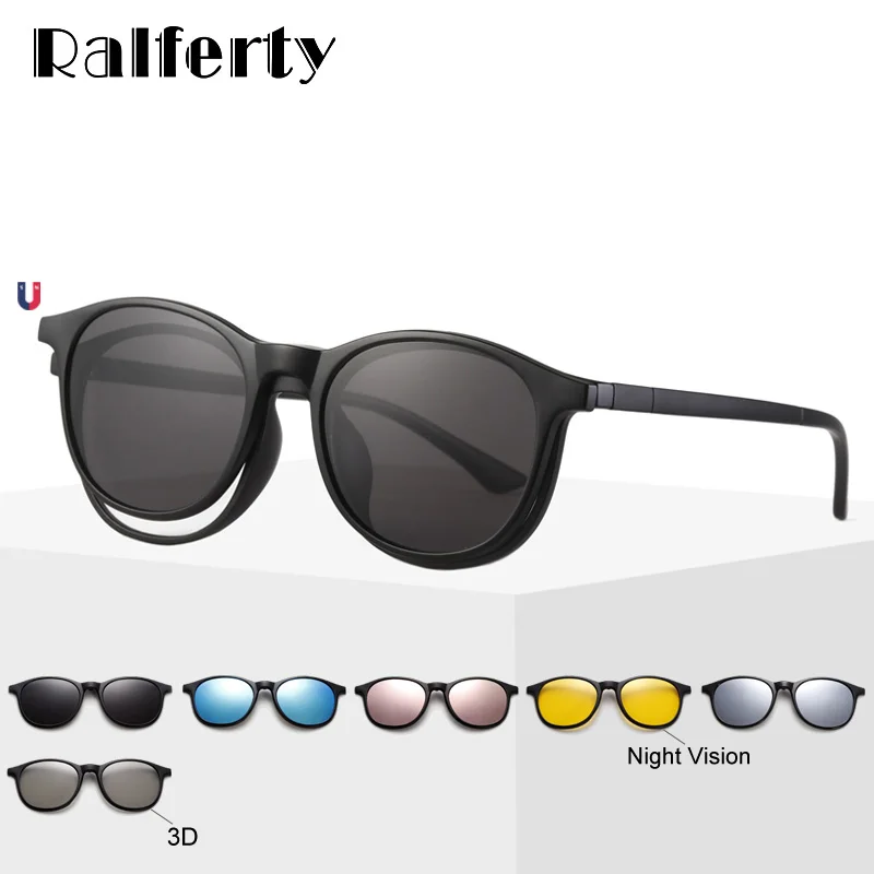 Ralferty магнитные солнцезащитные очки Женская Сережка на солнечных очков Для мужчин поляризационные UV400 высокое качество TR90 3D Ночное видение ...