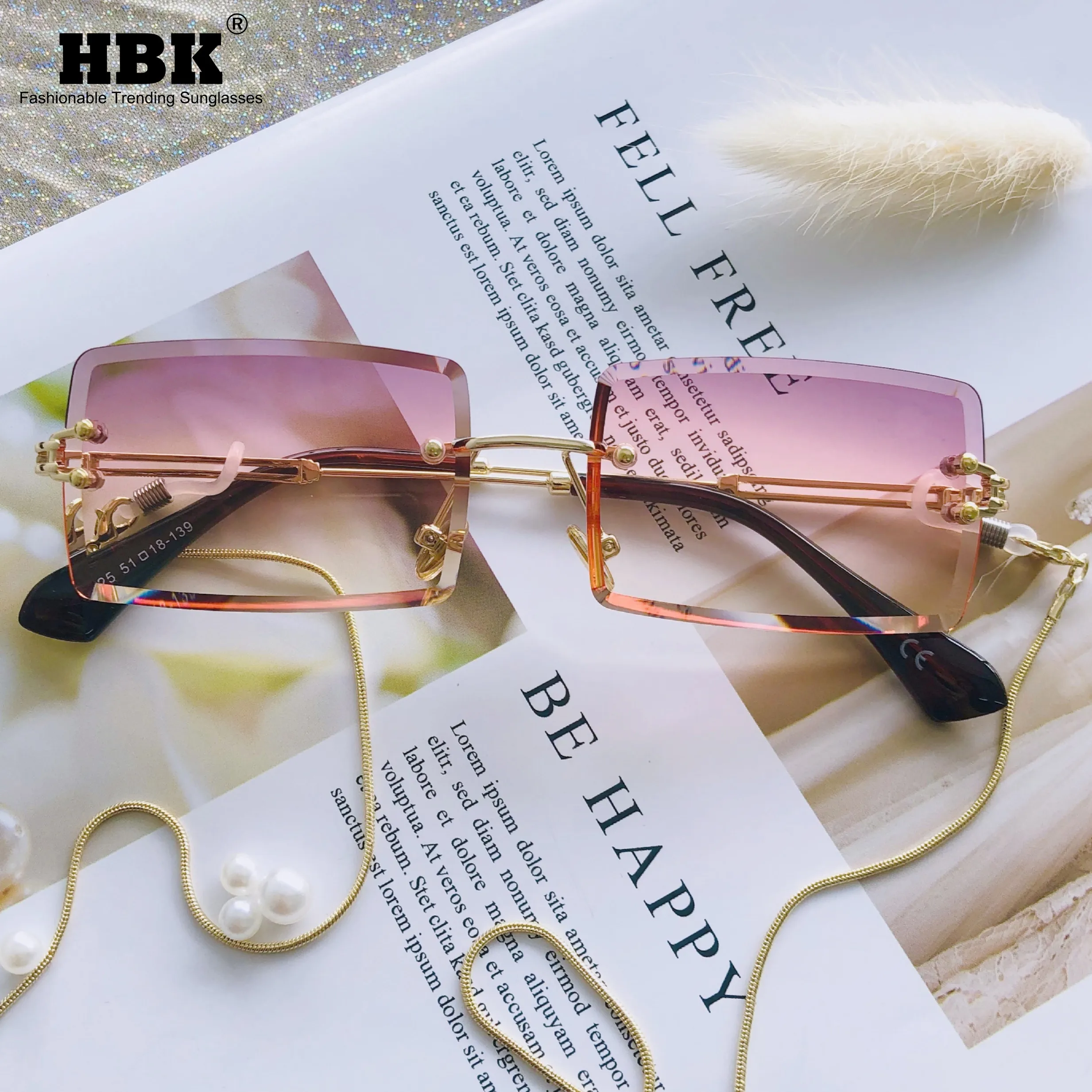 HBK маленькие прямоугольные солнцезащитные очки для женщин 2020 Летний стиль модные квадратные солнцезащитные очки без оправы для женщин мужчин и женщин UV400 розовый коричневый